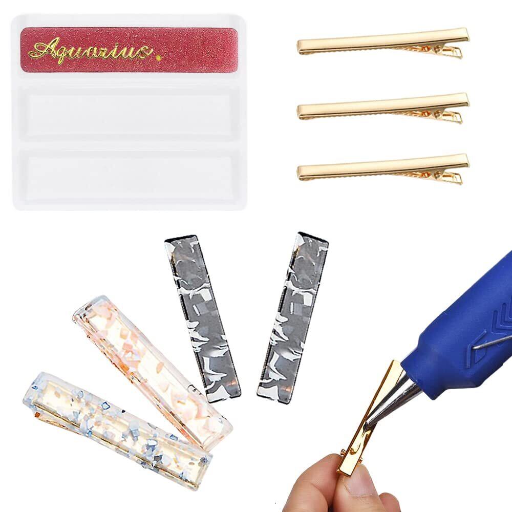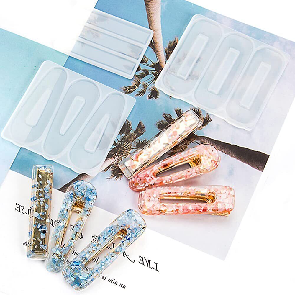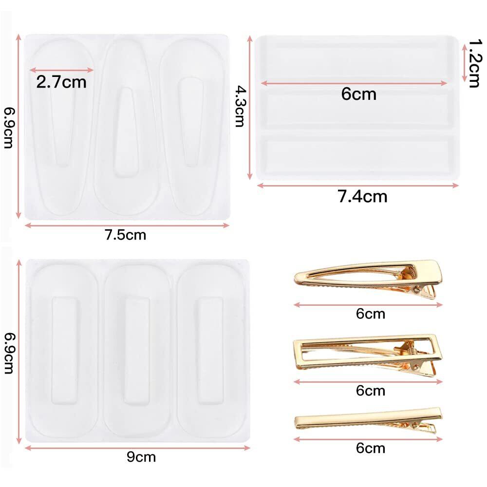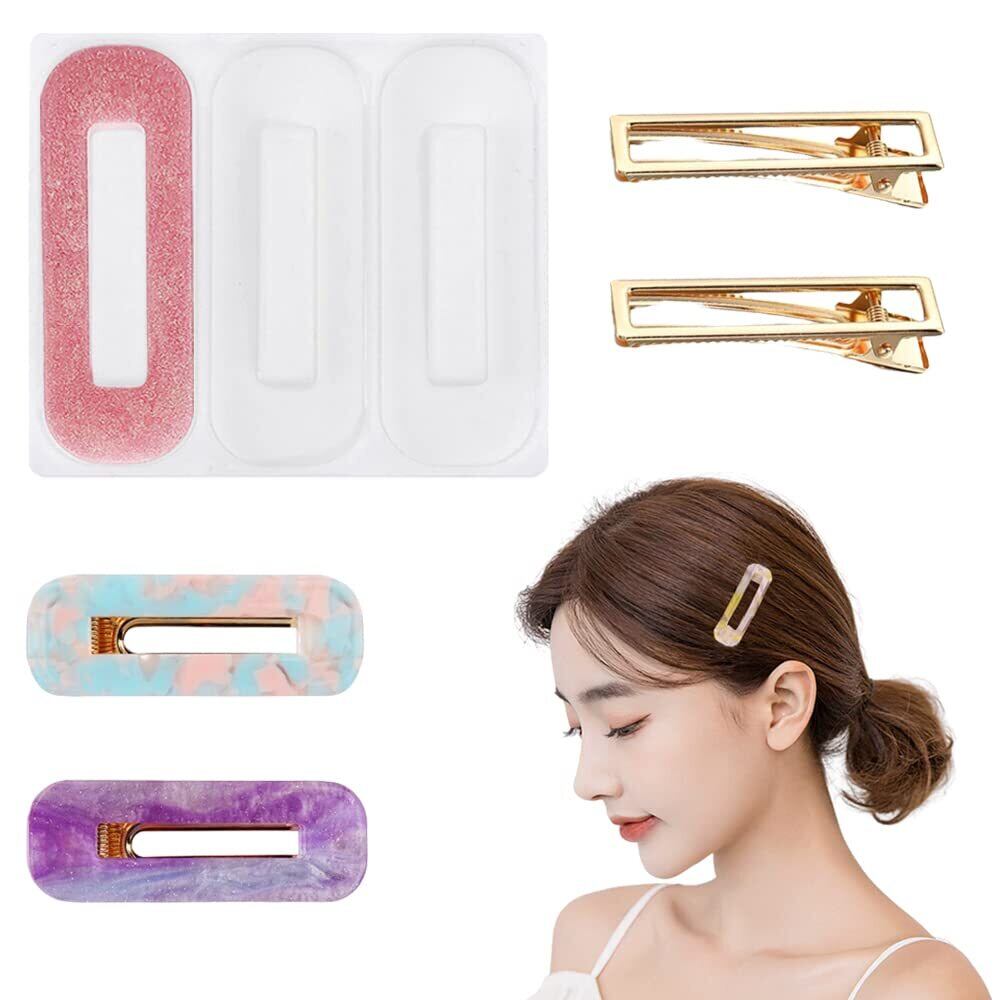 サムコス ヘアクリップ シリコンモールド 3個セット 金具クリップ12個付き 長方形 レジン ヘアピン UVレジン エポキシ樹脂 ソフトモールド ハンドメイド DIY 樹脂 工芸品 作成 (I)