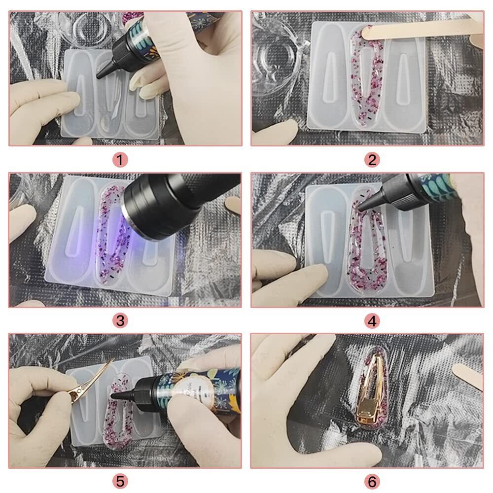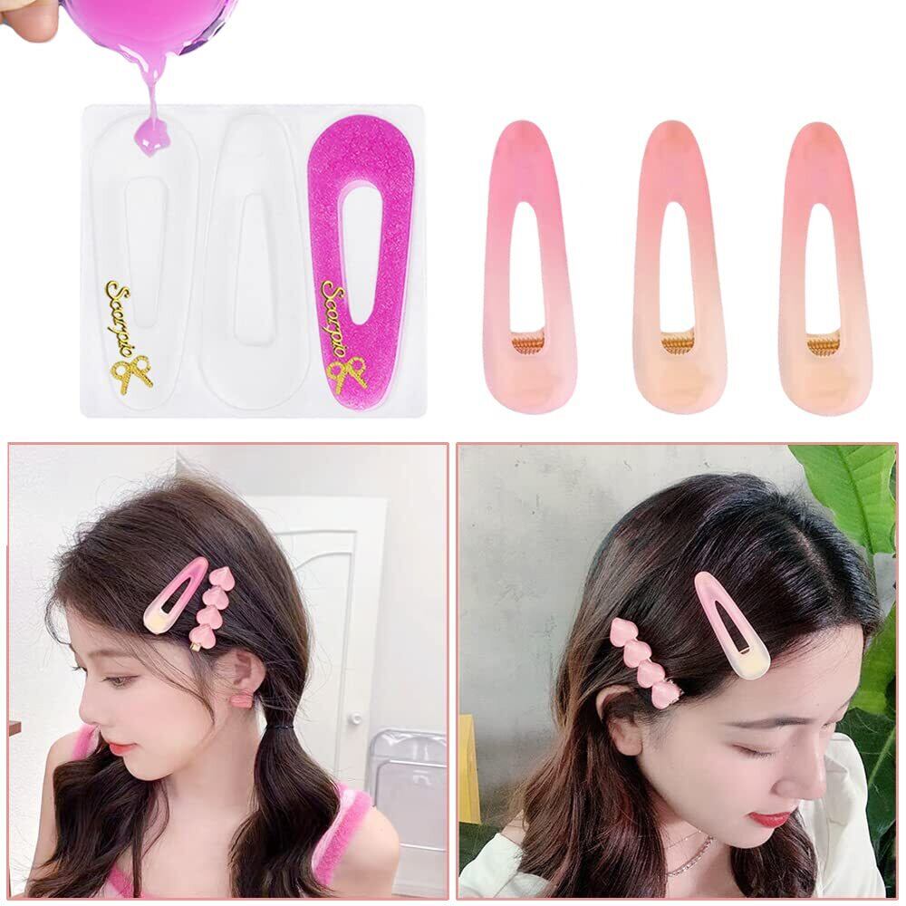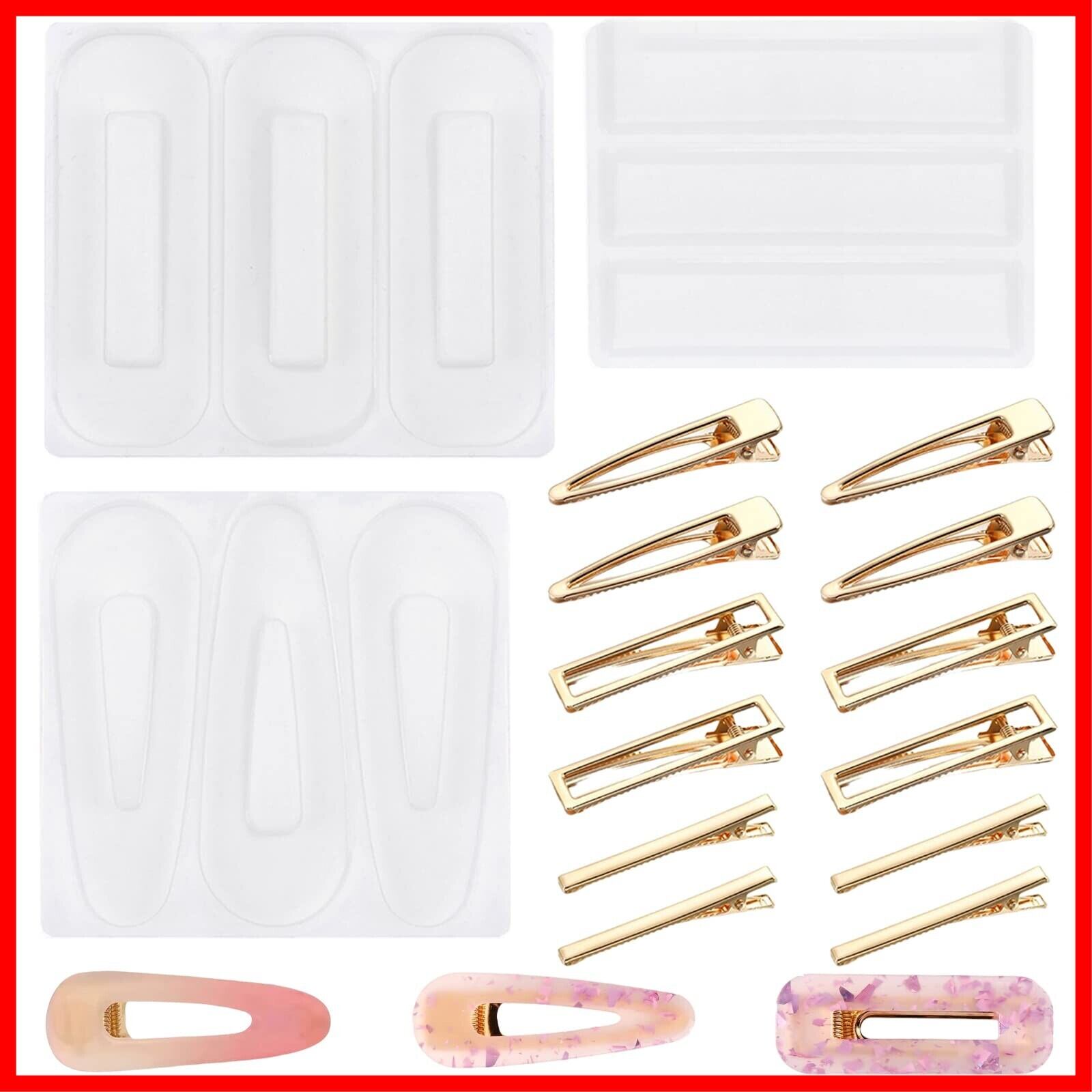サムコス ヘアクリップ シリコンモールド 3個セット 金具クリップ12個付き 長方形 レジン ヘアピン UVレジン エポキシ樹脂 ソフトモールド ハンドメイド DIY 樹脂 工芸品 作成 (I)