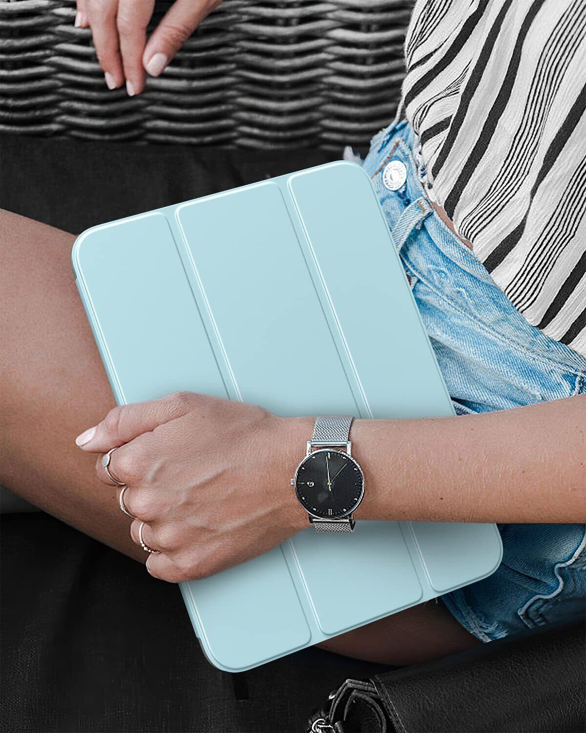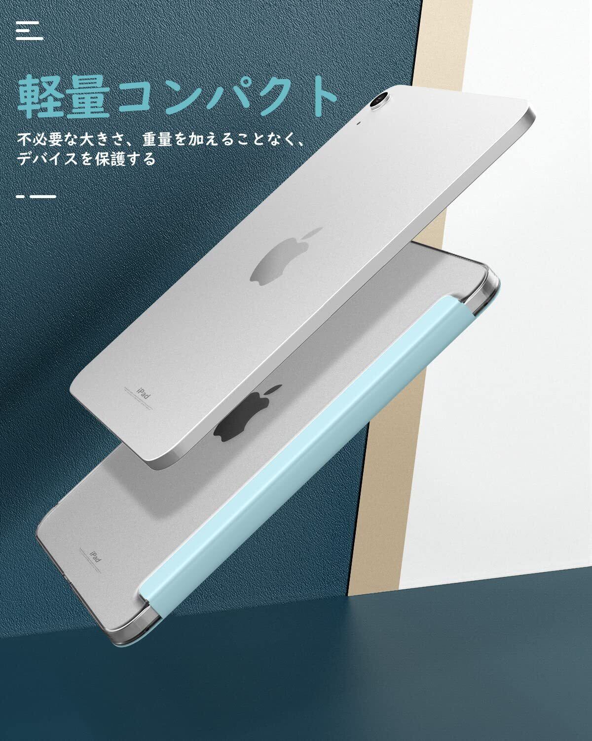 「前蓋PUレザー+背面半透明PC」 ケースの蓋は耐久性に優れた高級PUレザーで仕上げられて、インナーの素材は柔軟なマイクロファイバー製で、端末が摩擦により発生する擦り傷を和らげます。iPadをしっかりと保護できます。背面ケースは無色半透明PC製で薄型一体式手帳型全保護仕様となっており、優しい手触り感じがして、取付やすくなっています。