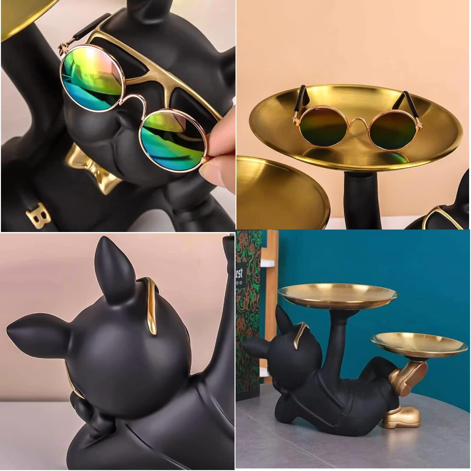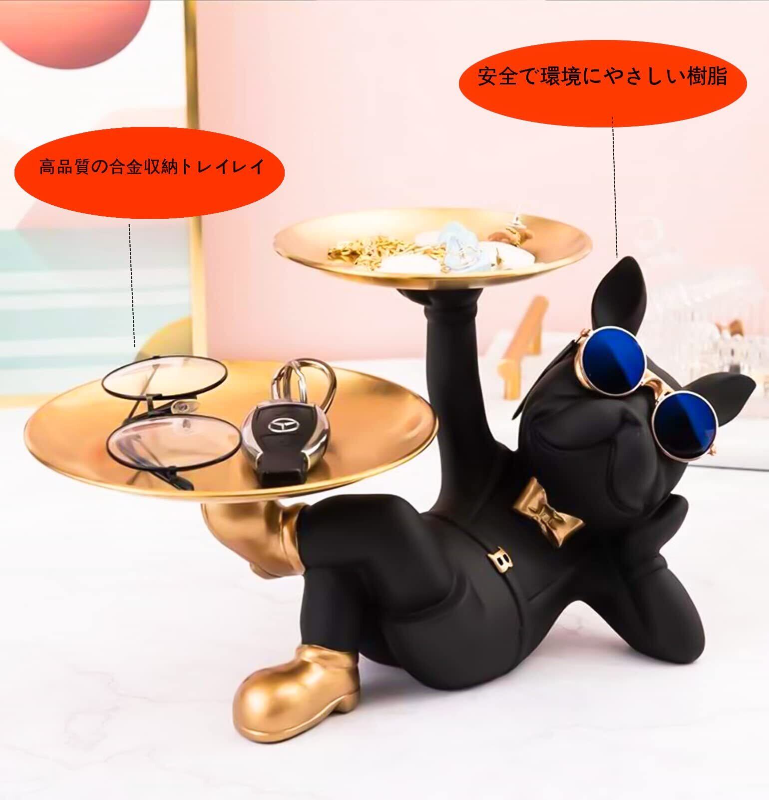 皿を捧げる犬さん クリエイティブ犬キー収納トレイ 置物 ん 玄関トレイ付 フレンチブルドック ギフトカード付 眼鏡付き 面白い 誕生日プレゼント ク リエイティブ 飾り 犬オーナメント 鍵置き/ジュエリーなど小物収納 卓上置物 眼鏡置き インテリア雑貨 化粧卓 樹脂 クリスマス/ハロウィン/ご誕生日/結婚式/バレンタイン・デー/記念日/卒業式 (C)