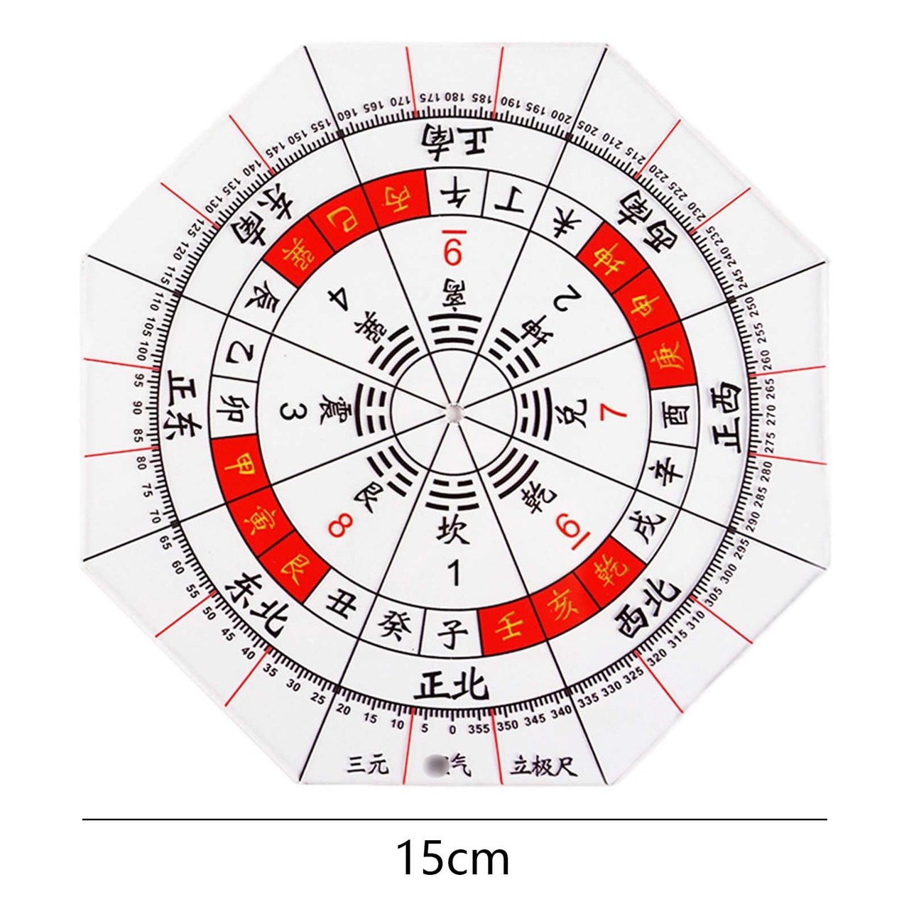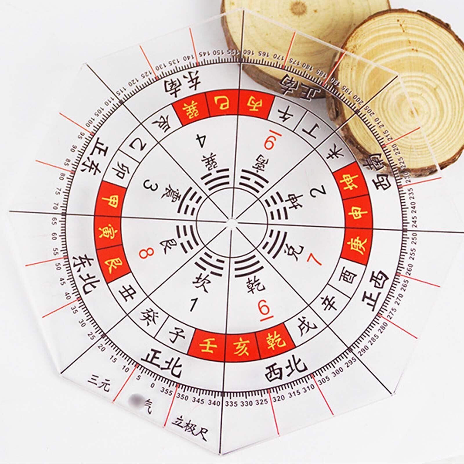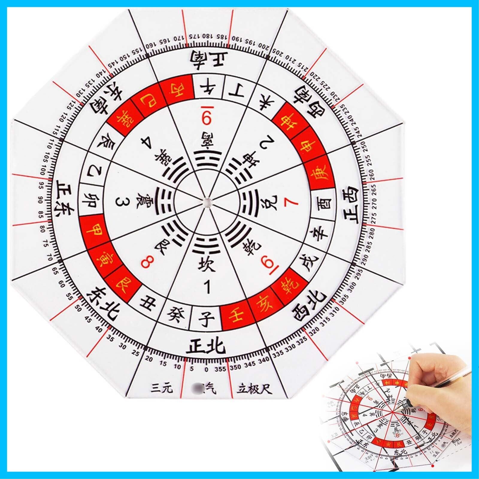 分度器 プラスチック分度 アクリル分度器 方位分度器 全円分度器 透明方位盤 測定ツール 玄空飛星 八宅風水 風水羅盤透明シート 干支による方位を付した分度器 8角形