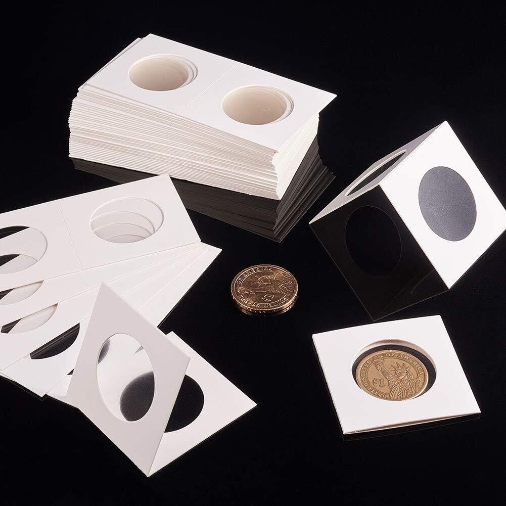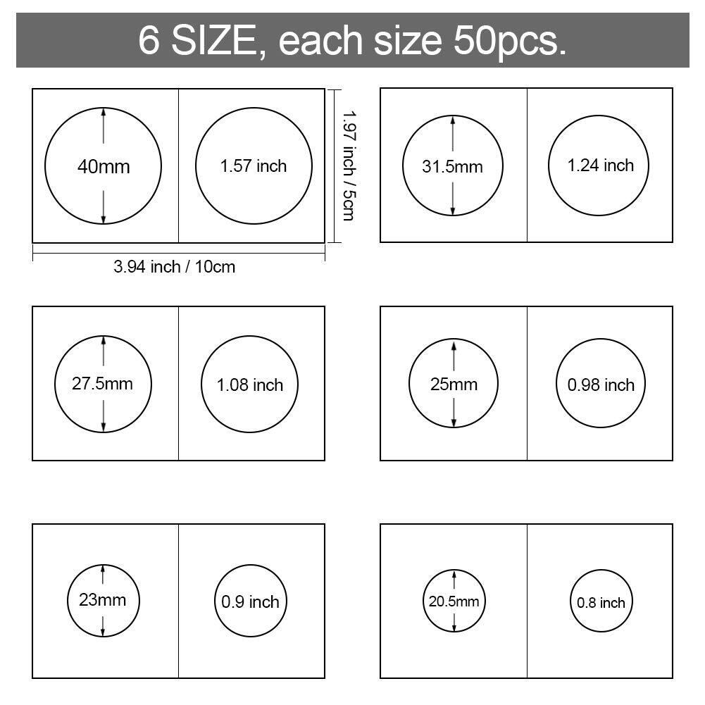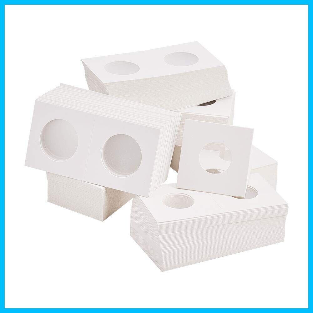 PH PandaHall 約300個 6種 白いボール紙 紙製コインホルダー収納コインケース 透明 記念コイン収納カード コイン収納用品 小分け丸ケース コイン保存用 コインコレクション容器 DIY用 手芸用品 ホワイト