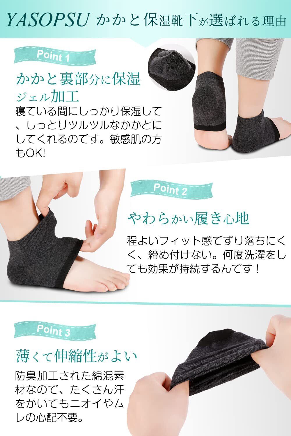 【皮膚のプロが推薦】YASOPSUのかかと保湿靴下は、保湿の秘密はソックスの裏側!保湿成分を配合したジェルがかかとの乾燥を防ぎ、しっとり滑らかな肌触りに。窮屈さのないソフトな履き心地で就寝中に履いて寝ながらケアもOK。保湿クリ一ムを塗ってのご使用もおすすめです。女性も男性もお使いいただけます。繰り返し使えるのもポイント。