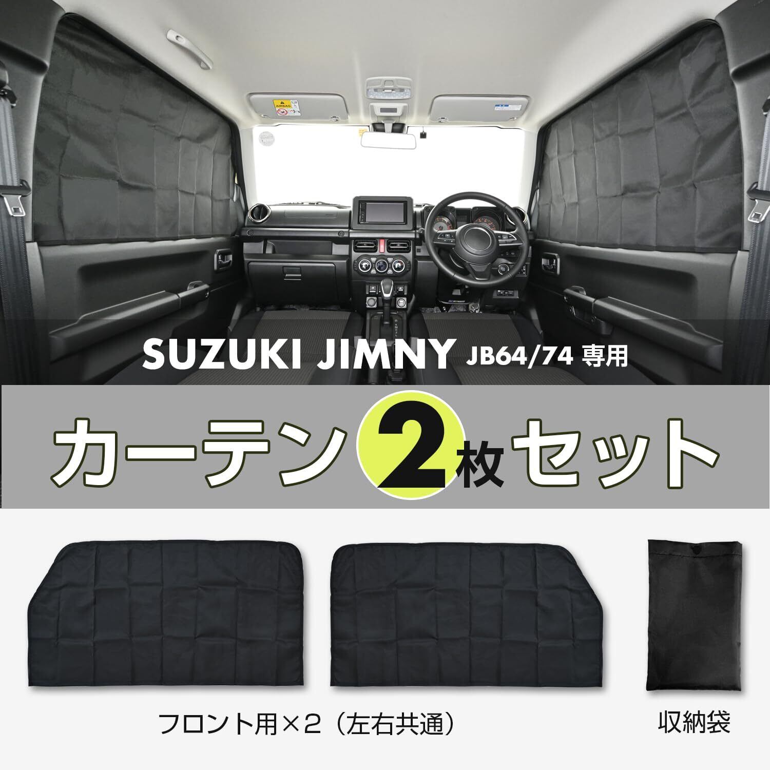 セイワ(SEIWA) 車種専用用品 スズキ ジムニー&シエラ&ノマド (JB64/JB74/JC74)専用 マグネット フロントサイド カーテン 2枚セット IMP216 遮光3級生地使用 専用設計 車中泊 車上荒らし対策 日焼け防止 5ドア JIMNY NOMADE にも対応