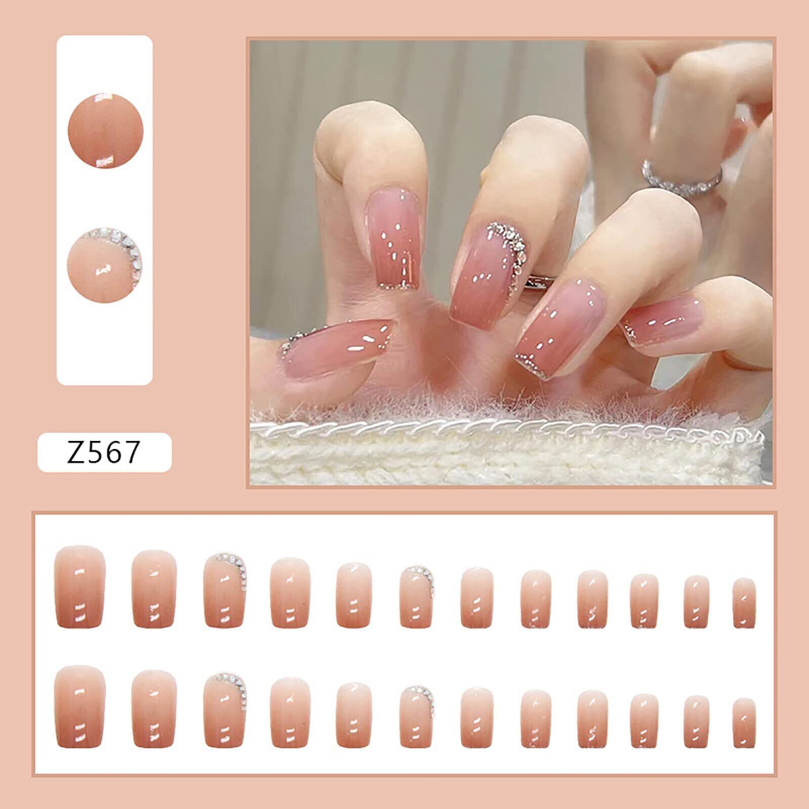 ドミ屋 ネイルチップ 24枚入ショート 夏人気 和風 かわいい シンプル おしゃれ 成人式 入学式 卒業式 結婚式 パーティー 花嫁ネイル 日常生活に使用できます 両面テープ ウッドスティック ネイルファイル付き (Z567)