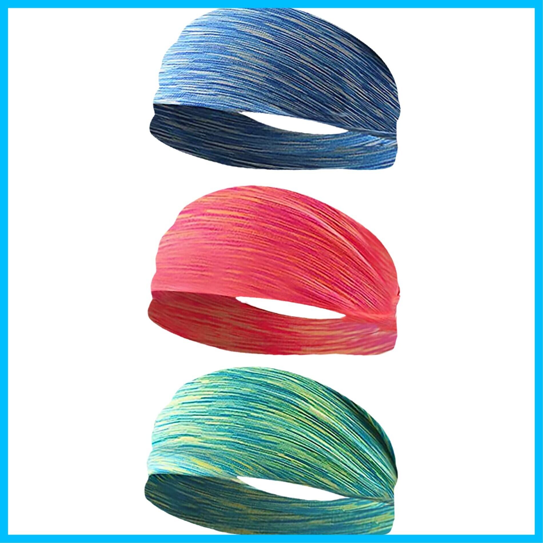 ヘアバンド メンズ ヘッドバンド ヘアターバン 汗止め 洗顔 薄型 スポーツ ランニング ダンス ヨガ ジョギング オールシーズン 男女兼用 3本セット (#09.ストライプブルー+ストライプピンク+ストライプグリーン)