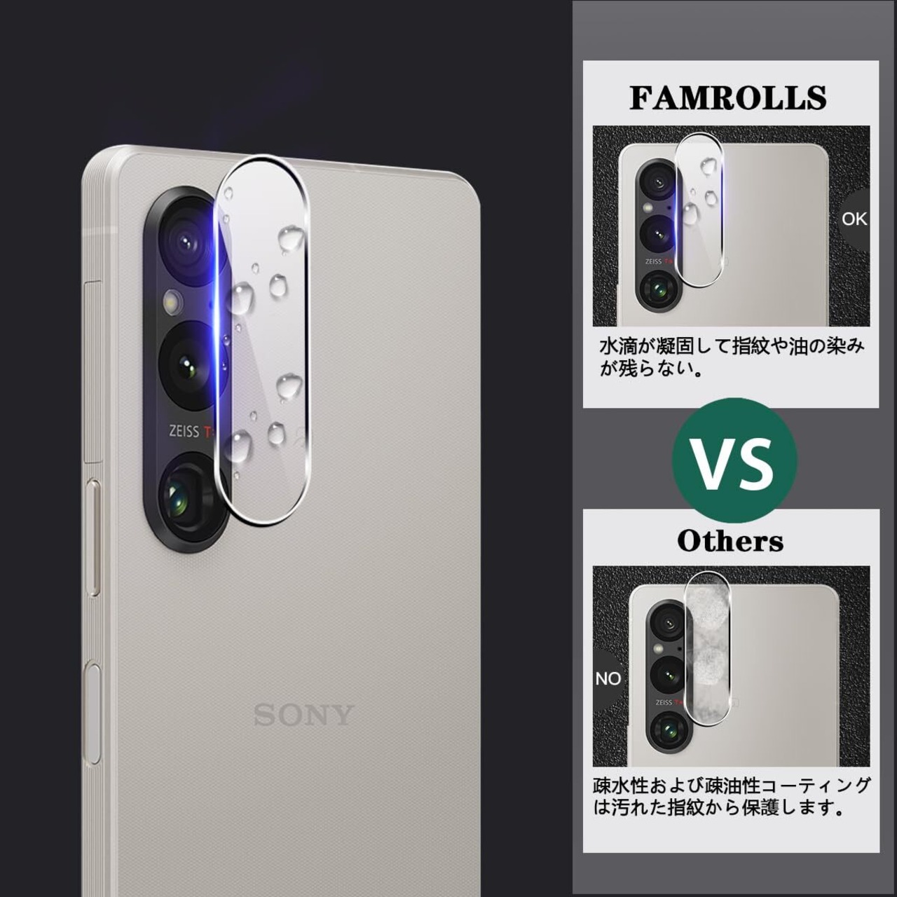 FAMROLLSの 用 Xperia 1 V カメラフィルムは高品質な日本のガラスによりクオリティの高いフィット感で一体感のあるフォルムをしています。