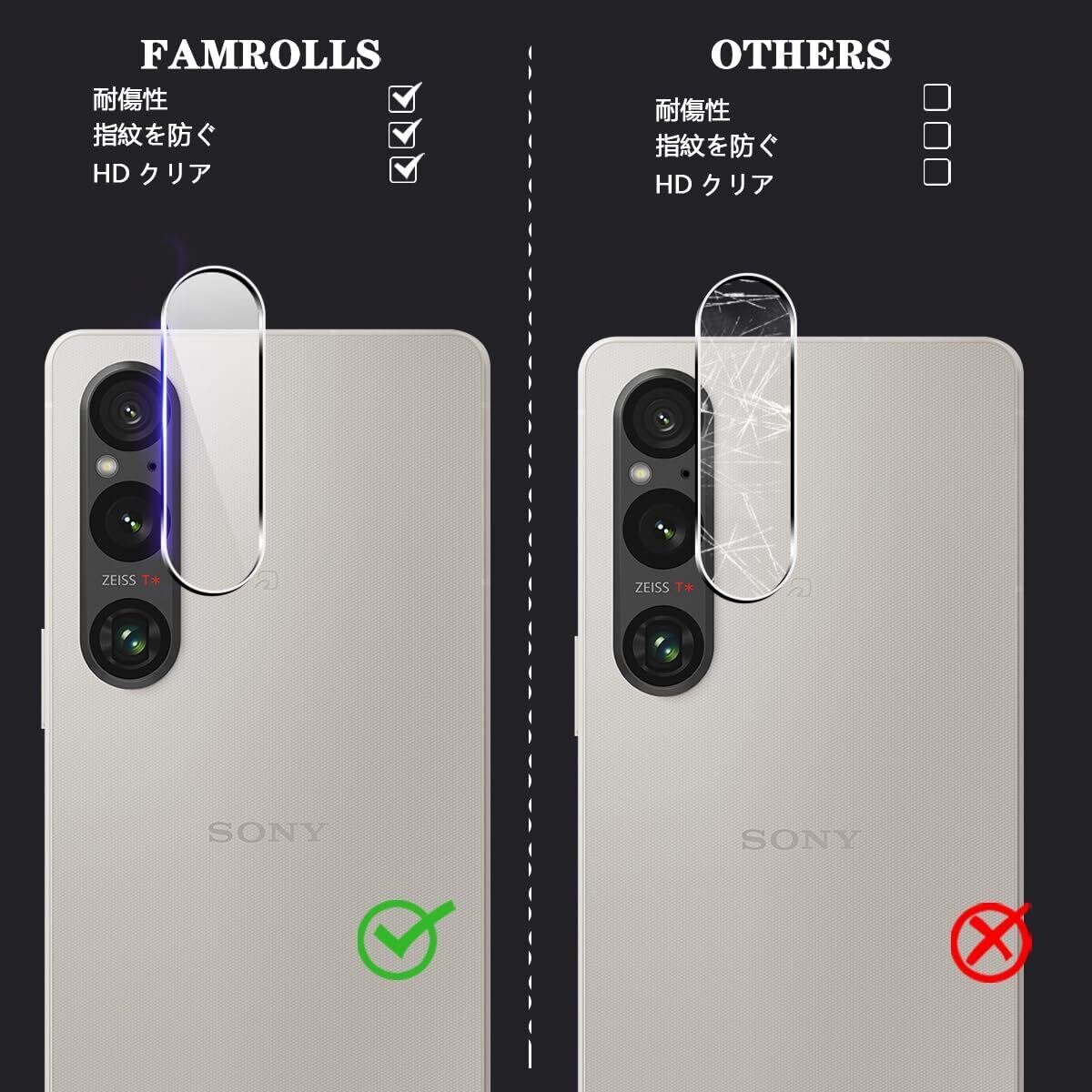 【対応機種】 Xperia 1 V 専用。素材に日本製の旭硝子を採用。【2枚セット】2枚 用 エクスペリア 1 V 強化カメラフィルム【FAMROLLS正規品】スマホの周辺アクセサリーを長年手掛けるFAMROLLSメーカーの人気スマホカメラフィルムです。