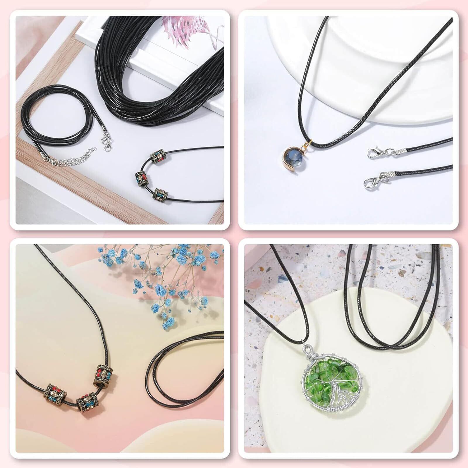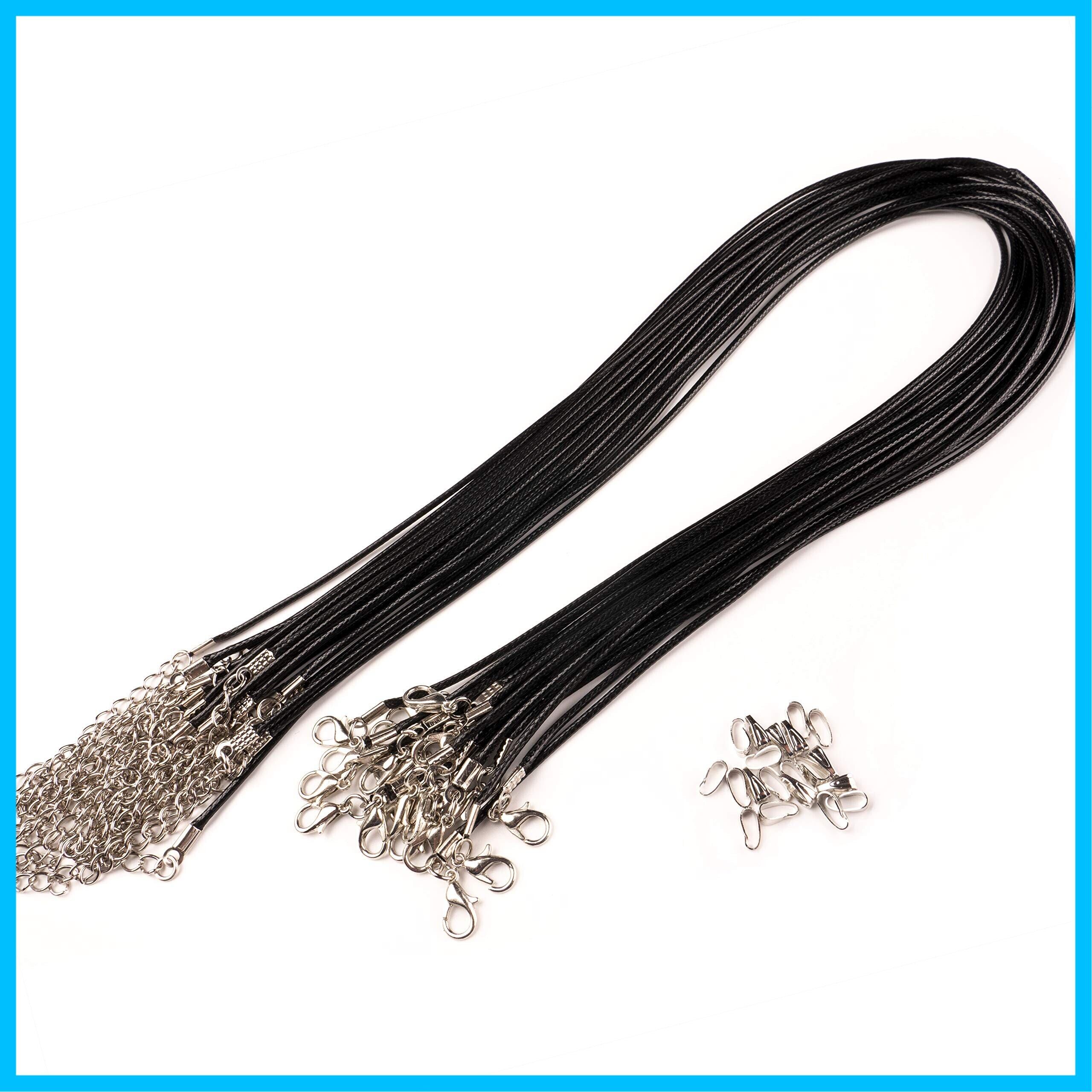 ネックレスチェーン 合皮 レザー チョーカー 紐 金具付 20本セット 黒×シルバー/カニカン アジャスター付き バチカン20個 手芸 ハンドメイド材料