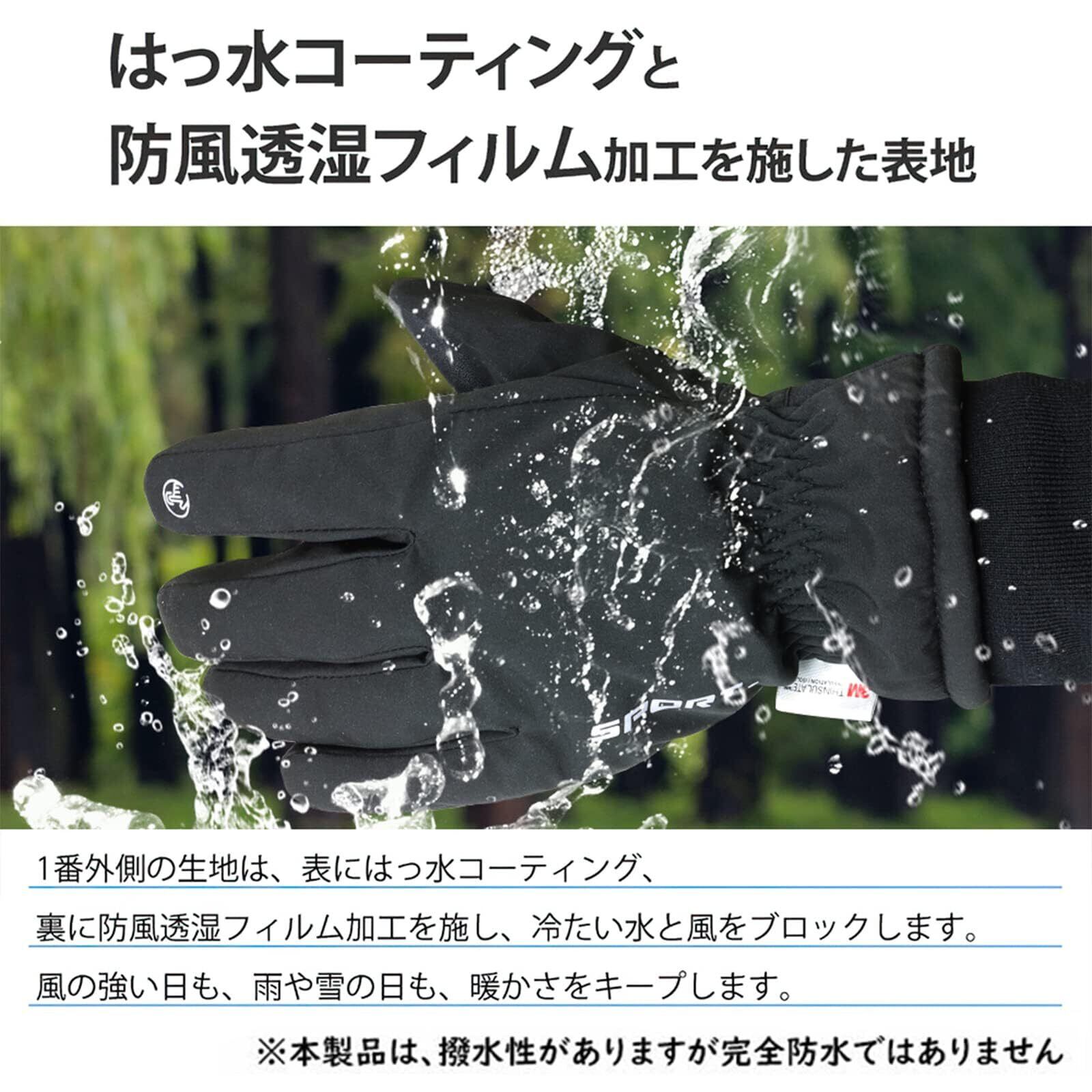 ❄️【 3Mシンサレート&極上の保温防寒設計 】 3M社が誇る高機能断熱素材「シンサレート」を採用した。同じ厚さのポリエステル綿と比べて約1.5~2倍の保温力があり、「薄くて、暖かい!」優れた断熱効果を発揮します。薄手でありながら、一般的なポリエステル綿の約1.5~2倍の保温力を発揮します。 さらに、裏面の起毛加工が追加の断熱層を形成し、冷たい風もシャットアウト。防寒・防風機能が充実しており、スキーやスノーボードといったウィンタースポーツから、バイク、自転車、登山、釣り、雪かき、軽作業まで、寒冷地でのあらゆるシーンで活躍する理想的な防寒手袋です。