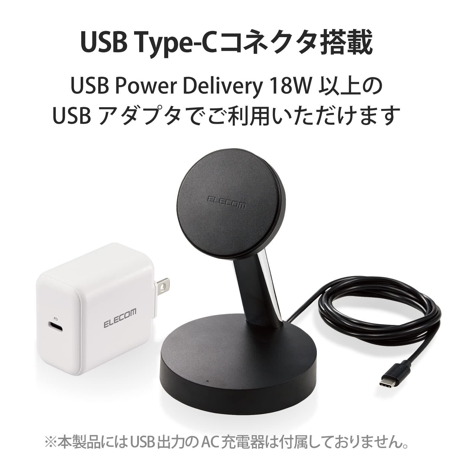 エレコム ワイヤレス充電器 7.5W マグネット式 スタンドタイプ 縦置き/横置き両対応 ケーブル一体(1.5m) ブラック W-MS02BK