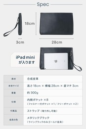 大人の万能クラッチ クラッチバッグ 選べる4デザイン 4つの小物ポケット A5・8.3インチタブレット対応 結婚式 冠婚葬祭 パーティ PUレザー フォーマル セカンドバッグ