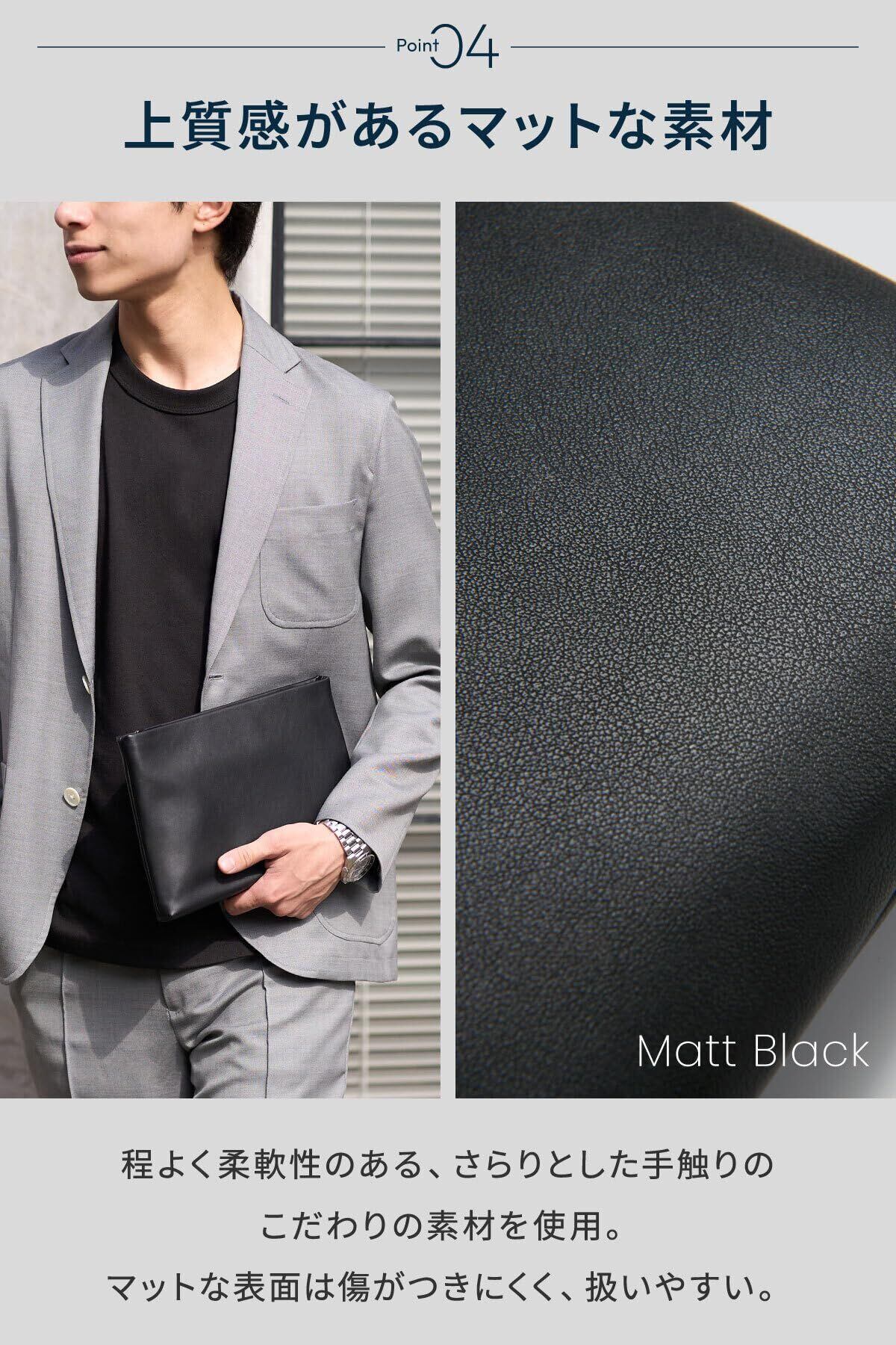 【冠婚葬祭シーンに最適】礼装マナーを守る上質なマット素材 結婚式や葬儀、法事など、落ち着いた立ち振る舞いが求められるシーンにふさわしいクラッチバッグです。殺生を連想させる本革を避けるのがマナーとされる冠婚葬祭でも、上質な合成皮革を採用しているため安心してお使いいただけます。マットな質感は傷がつきにくく、どんなスーツスタイルにも気品を添えます。