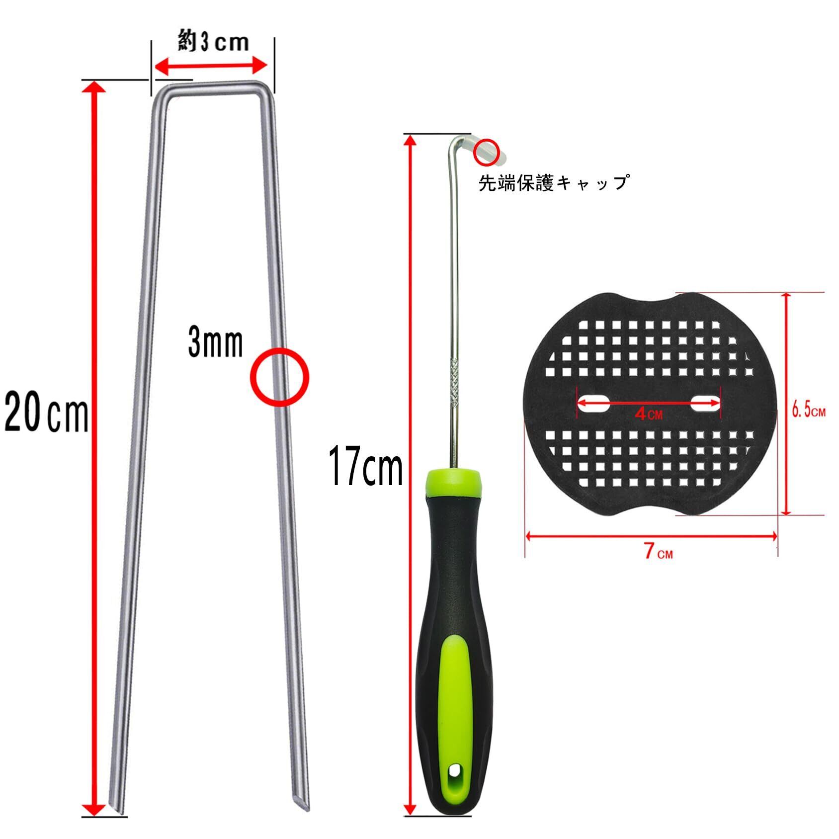 【抜きフック付き、再利用可能】便利な引き掛け針工具も付属しており、スムーズな設置をサポートします。再利用の際に作業効率が大幅に向上して、とても便利です。製品を繰り返し使用することで資源の消費を減らし、経済的な負担を軽減できます。ピンの長さ15㎝と20㎝の2種類があります。選べる数量:30本、50本、100本、200本のセットから選択可能です。