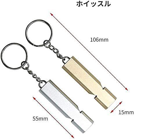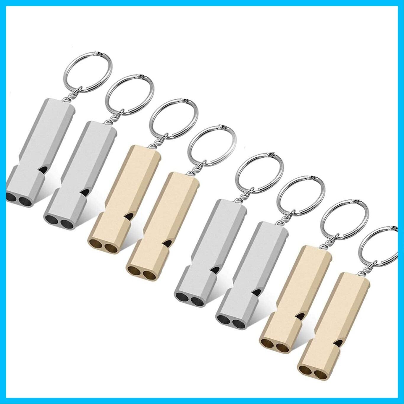 ホイッスル 防災 アルミ製 笛 救援 8枚セット キーチェーン付き 金色/銀色
