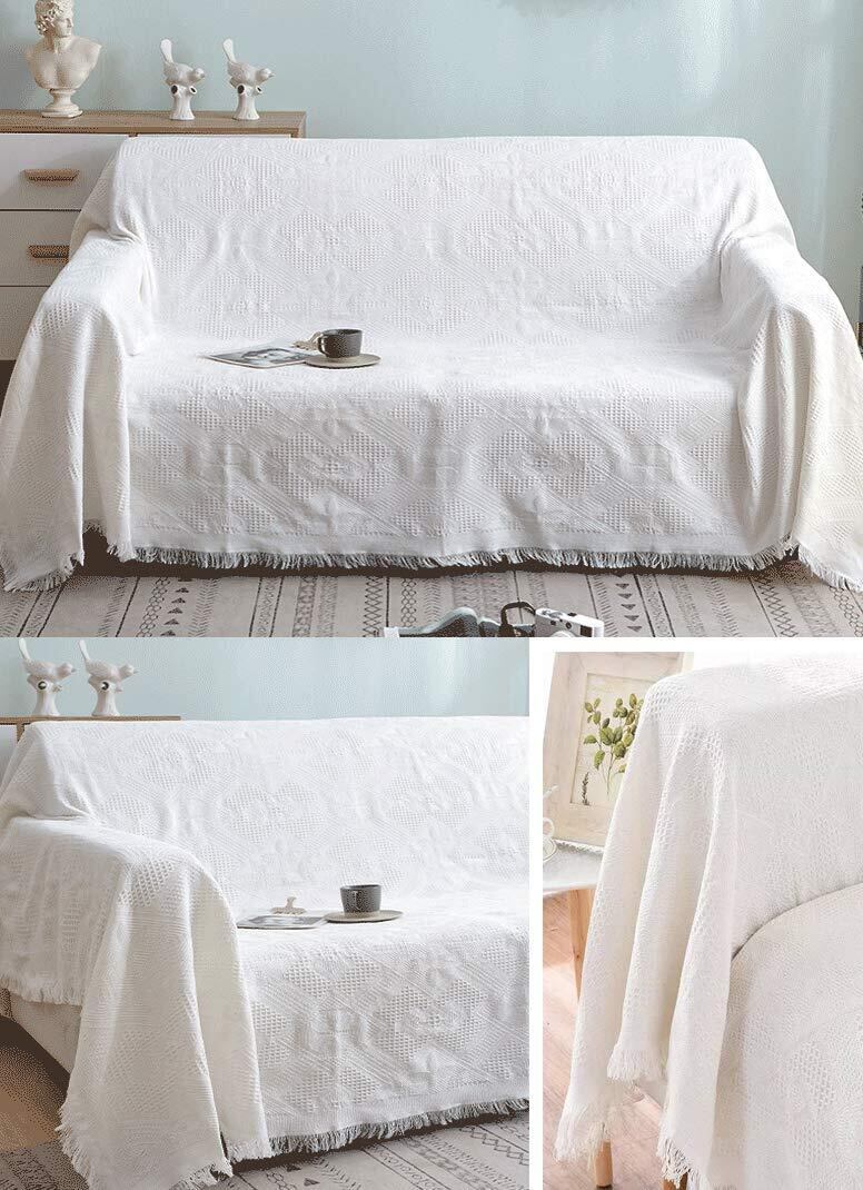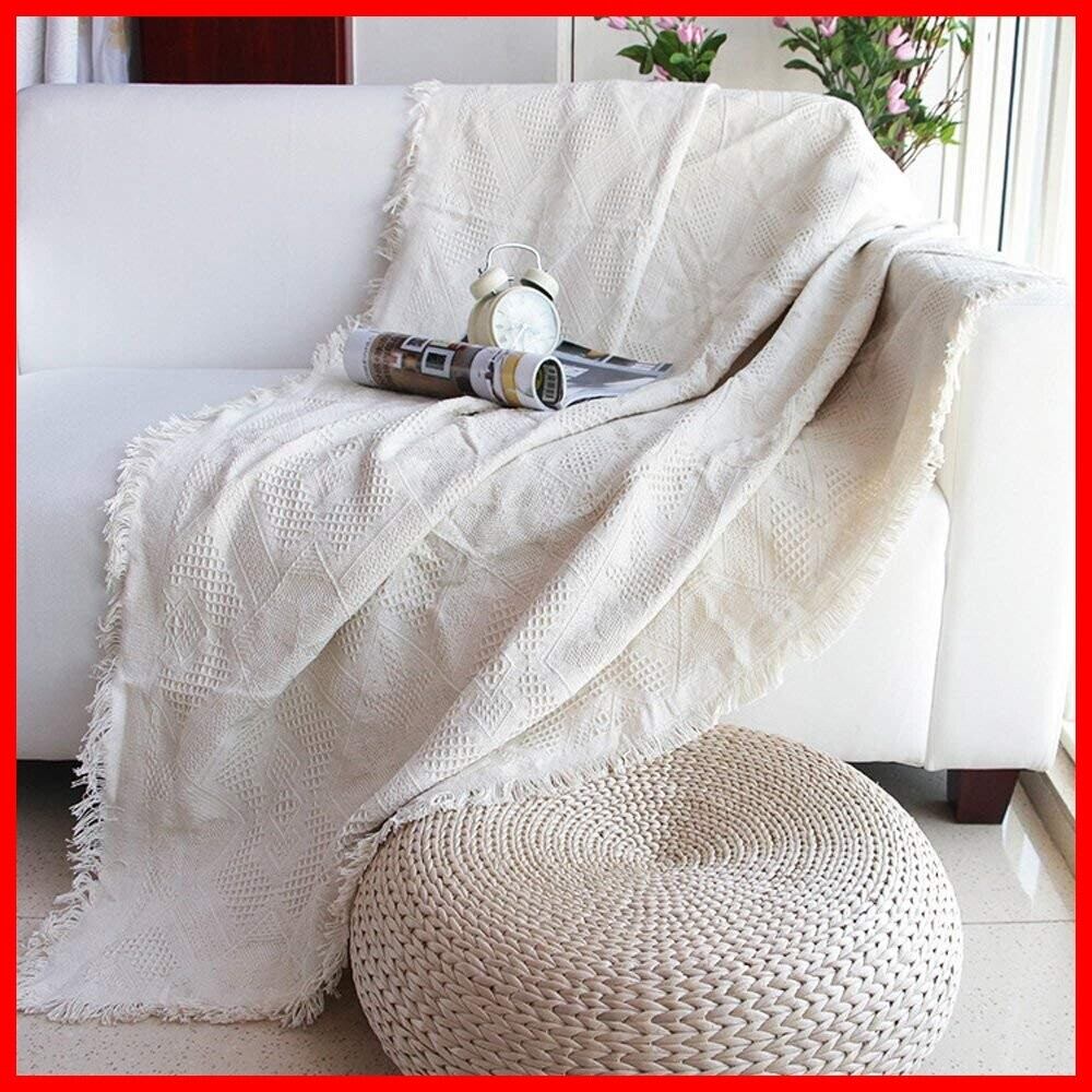HomeFirst 北欧風 マルチカバー 長方形 おしゃれ ソファカバー 多機能 ブランケット ベッドカバー フリンジ付き 綿 1人掛け 2人掛け 無地 カウチ ベッドカバー 毛布 テーブルクロス テーブル掛け枚 両面使える 水洗い 四季通用(130*180cm)